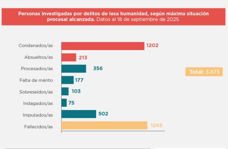 Procuraduría de Crímenes contra la Humanidad informó que 1.202 personas fueron condenadas y 213 resultaron absueltas en 353 sentencias por crímenes de lesa humanidad dictadas desde 2006.