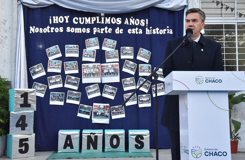 El gobernador Leandro Zdero acompañó este lunes, el acto por el 145º aniversario de la Escuela de Educación Primaria Nº1 “Benjamín Zorrilla”, que alberga al Primer Museo de la Educación de la provincia. “Es un gran privilegio acompañar este aniversario, aquí se respira una historia muy rica de la educación del Chaco, estamos en la escuela que es pionera de la educación chaqueña”, indicó.