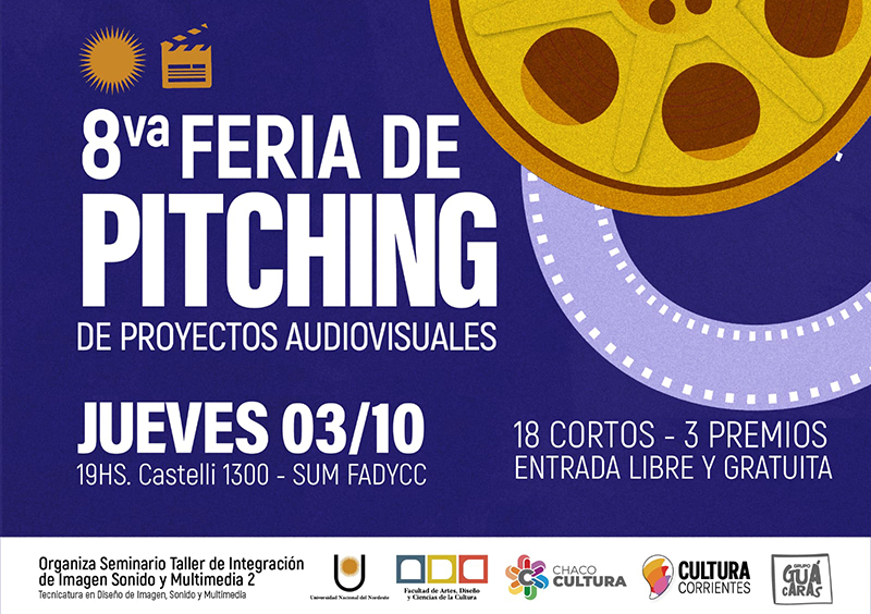El próximo jueves 3 de Octubre, a las 19 hs. en el SUM de la Facultad de Artes y Diseño de la UNNE de Av. Castelli 1300, 3er piso, se desarrollará la 8ª Feria de Pitching de Proyectos Audiovisuales, organizada por la cátedra Seminario Taller de Integración de Imagen, Sonido y Multimedia 2 de esa Facultad. La entrada será libre y gratuita.