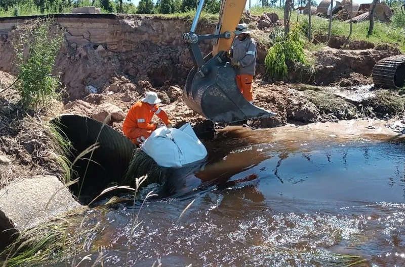 A contrareloj reparan tres alcantarillas arrasadas por las lluvias sobre la Ruta 12