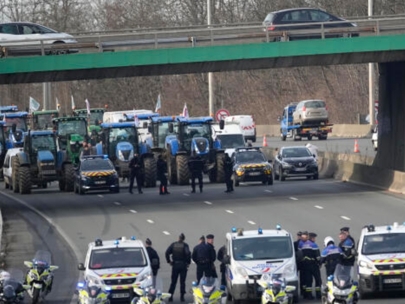 Las autoridades, que hasta ahora evitaron frenar las protestas, movilizaron 15.000 policías y gendarmes para evitar el bloqueo de los aeropuertos parisinos y el importante mercado mayorista de Rungis, a unos siete kilómetros de la capital, adonde se dirigen unos 30 tractores que partieron en la mañana del suroeste.