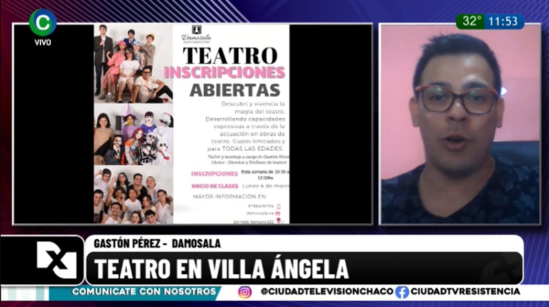 El actor y director de Damosala, espacio de teatro independiente de Villa Ángela, Gastón Pérez, habló con CIUDAD TV sobre la situación que atraviesa el sector en el marco de las políticas de ajuste y el riesgo que implica la política del gobierno nacional que apunta al cierre del Instituto Nacional del Teatro (INT) y el Fondo Nacional de las Artes (FNA).