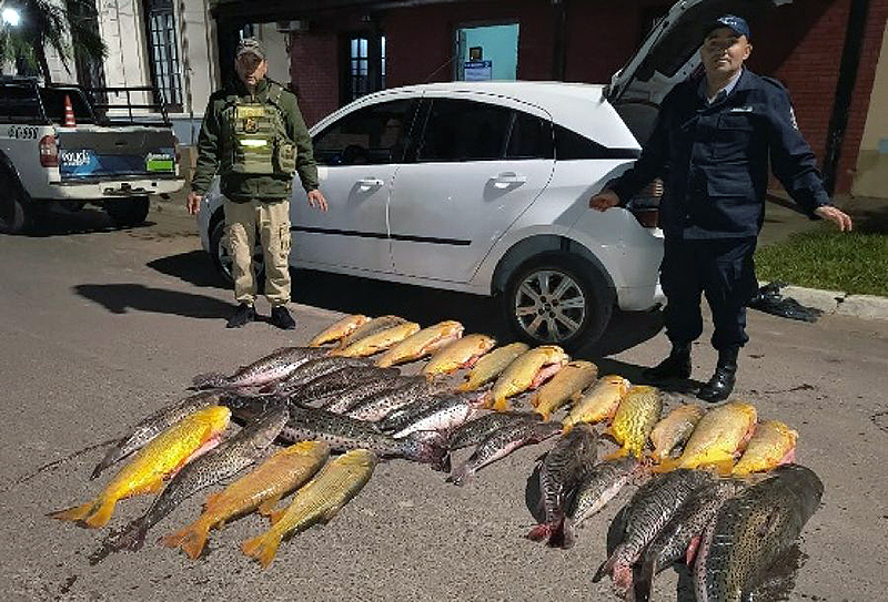 En la ocasión, los efectivos detuvieron la marcha de un vehículo automotor – marca Chevrolet Agile – que ocupaban dos hombres de 34 y 51 años, a quienes solicitaron que exhiba el interior del rodado. La requisa que permitió observar dorados y surubíes de diferentes tamaños de los que no justificaron su procedencia y/o destino.