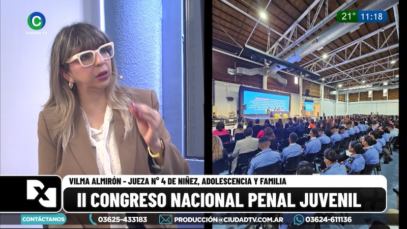 Vilma Almirón, jueza Nº 4 de Niñez Adolescencia y Familia, visitó los estudios de CIUDAD TV tras su paso por el II Congreso Nacional Penal de Adolescencia Juvenil, realizado en Catamarca, que se organiza en el marco del Foro Penal Adolescente Juvenil que pertenece a la JUFEJUS. “Es un congreso bien federal y Chaco pisa muy fuerte porque la doctora Emilia María Valle, ministra del Superior Tribunal de Justicia del Chaco, preside la JUFEJUS y fue ella quien aperturó este congreso con una potente y firme manifestación de no a la baja de la imputabilidad”, remarcó Almirón.