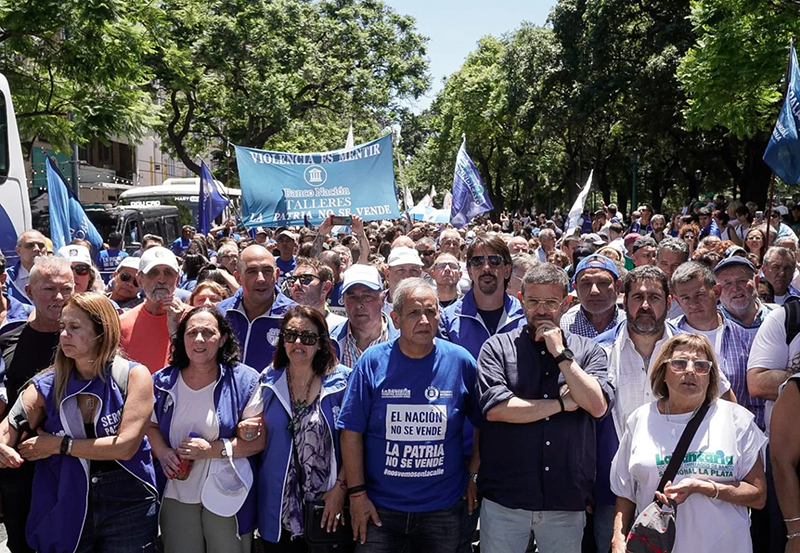 Agradecemos el apoyo de todos los trabajadores y trabajadoras del BNA, a lo largo y a lo ancho de la República Argentina, quienes realizaron asambleas, movilizaciones, abrazos al banco y distintos planes de lucha en defensa de este intento de privatización, como así también a las Comisiones Gremiales Internas del banco y Seccionales de todo el país.