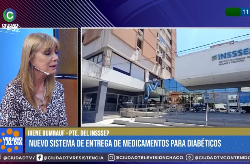 La titular del InSSSeP, Irene Dumrauf, visitó los estudios de CIUDAD TV para dialogar sobre el nuevo sistema de dispensación de medicamentos para pacientes diabéticos en el interior provincial, que cubrirán las prescripciones médicas por el término de dos meses. Fue anunciado este martes y estará habilitado para afiliados de Las Palmas, San Martín, Tres Isletas, Castelli, Pampa del Infierno, Quitilipi, Sáenz Peña, Villa Ángela, Las Breñas y Charata, por la mañana y tarde, y en algunas de ellas las 24 horas. Para ello, se llevó a cabo una licitación pública y articuló con las farmacias privadas que fueron incorporadas ahora para brindar este servicio.