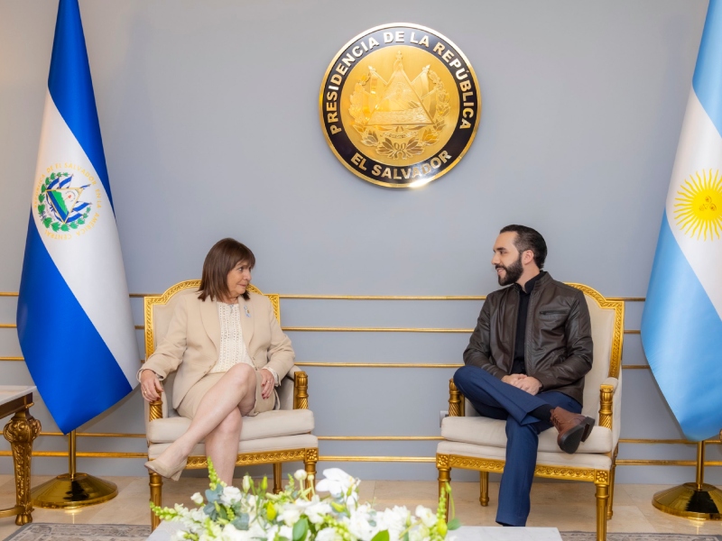 Previo a la reunión con Bukele, Bullrich mantuvo encuentros de trabajo con los ministros de Defensa Nacional, Francis Merino Monroy, y de Justicia y Seguridad, Gustavo Villatoro.