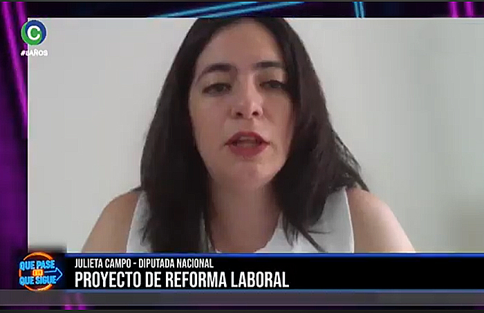 Julieta Campo aseguró que, ”nosotros estamos haciendo un trabajo muy fuerte para poder lograr que hoy no haya quórum. Ese es nuestro objetivo. Porque creemos que los bloques del medio o dialoguistas tienen que poder plantarse y decirle que no a la reforma laboral. Está claro que desde el bloque Unión por la Patria nosotros decimos un no rotundo”.
