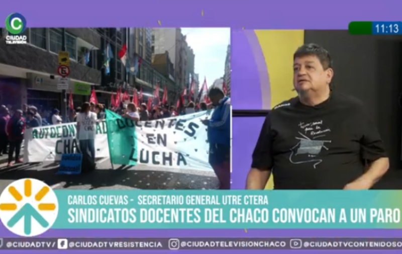El secretario General de UTrE CTERA, Carlos Cuevas, visitó los estudios de CIUDAD TV y ratificó la convocatoria al paro docente previsto para este lunes, en el reinicio de las clases tras el receso, frente al incumplimiento del pago de la cláusula gatillo.