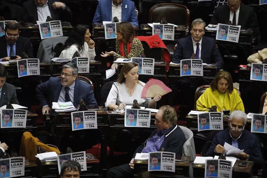 En la sesión especial de la Cámara de Diputados por la ley Bases y el paquete fiscal, los legisladores nacionales se sumaron al pedido de aparición con vida de Loan peña, el niño desaparecido hace 14 días en Corrientes. Los diputados aparecieron con carteles en las bancas con la consigna “Buscamos a Loan Danilo Peña”.