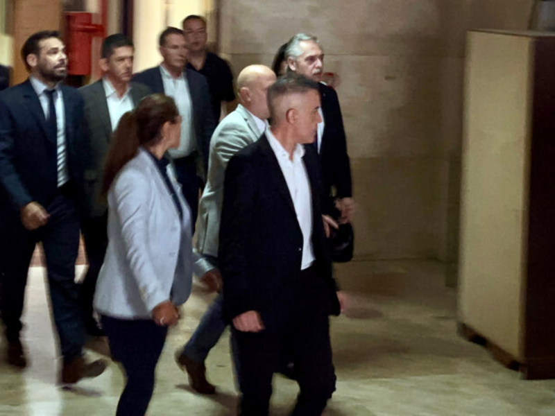 El ex presidente Alberto Fernández permanecía este mediodía en los tribunales de Retiro donde terminó de prestar declaración indagatoria en la Causa Seguros.