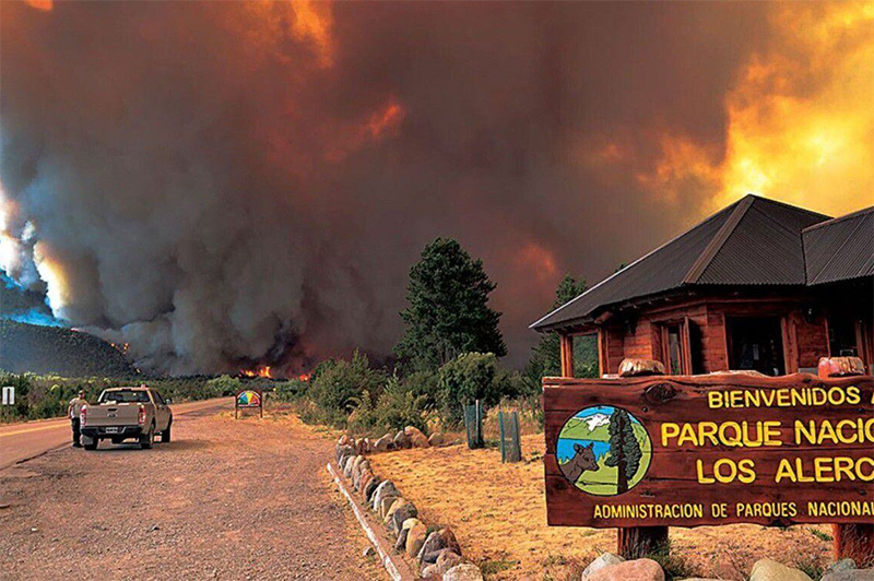 La administración de los Parques Nacionales corrió a las autoridades del Parque Nacional Los Alerces. El viento y el aumento de la temperatura pueden complicar la situación actual.