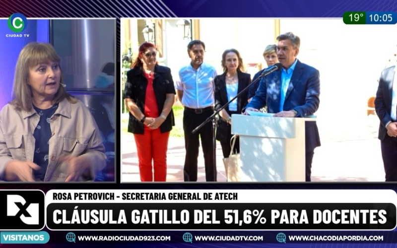 La secretaria General de la ATECH, Rosa Petrovich, visitó los estudios de CIUDAD TV luego de la confirmación del gobernador de la aplicación de la cláusula gatillo para el sector docente provincial.