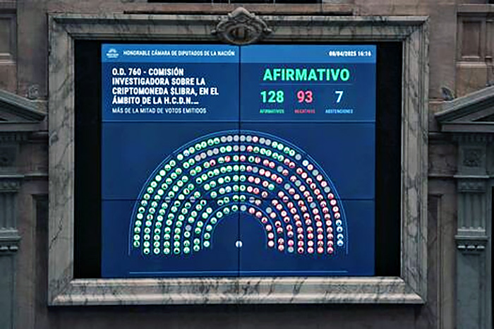 A pesar de que el Gobierno libertario intentó desactivar la sesión convocada por la oposición a partir del anuncio anticipado de que Guillermo Francos concurría al Congreso, la oposición alcanzó el quórum para avanzar en Diputados en la investigación de la estafa $LIBRA y dilucidar el rol que ocupó Javier Milei y Karina Milei. En la votación del proyecto, consiguió la aprobación con 128 votos a favor, 93 en contra y 7 abstenciones.