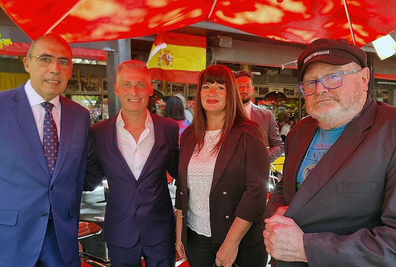 Tras el acto donde se colocaron ofrendas florales al pie del monumento a don Jerónimo Luis de Cabrera, fundador de Córdoba, en el día de la hispanidad, el cónsul se fotografió con el intendente carlospacense Esteban Avilés, la presidenta del Consejo de Representantes Alejandra Roldán y el escritor y editor Pedo Jorge Solans.