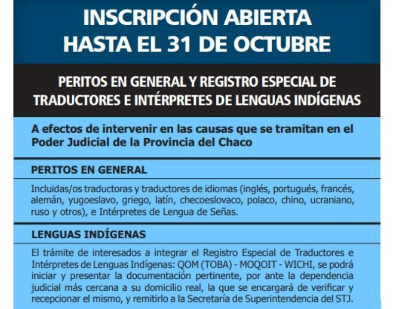 Hasta el 31 de octubre las y los interesados podrán inscribirse o reinscribirse en el registro de peritos en general y al registro especial de traductores e intérpretes de lenguas indígenas