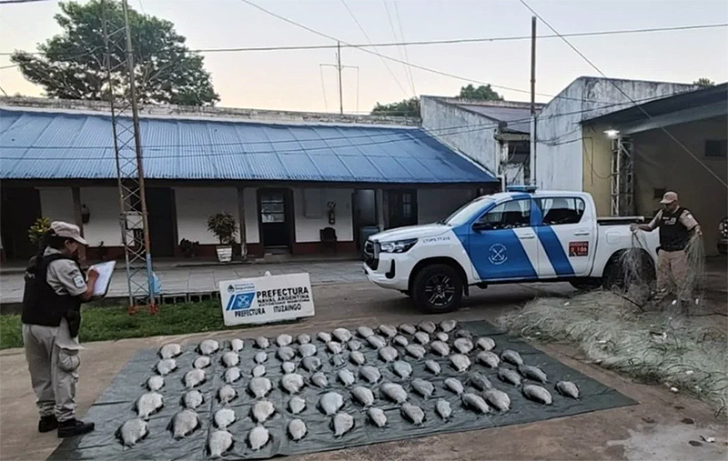 En un operativo realizado por la Prefectura de Ituzaingó en un área de reserva pesquera, hallaron tres redes extendidas en aguas del río Paraná, las cuales tenían atrapados 76 sábados con un peso total de 304 kilogramos. Los responsables huyeron hacia aguas paraguayas y se incautaron 1.500 metros de mallones.