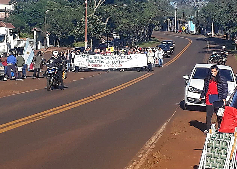 Simultáneamente, en la localidad de Eldorado, un grupo de docentes autoconvocados se concentró a las 09:00 horas en la vera de la Ruta Nacional N°12, a la altura del kilómetro 1541, cerca de la rotonda de acceso a la ciudad. Los manifestantes tienen previsto realizar un corte de ruta, exigiendo un salario digno y mejores condiciones laborales.