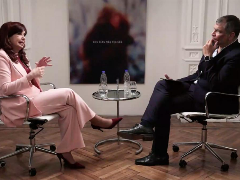 Las declaraciones formaron parte de una entrevista que la vicepresidenta y titular del Senado le concedió al exmandatario ecuatoriano Rafael Correa en el marco de un ciclo de charlas, y que fue difundida este lunes por el canal RT (Russia Today) en Español.