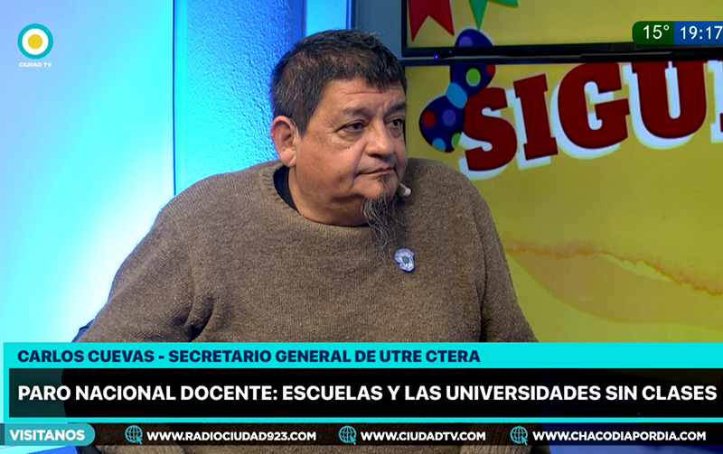 El secretario general de UTRE CTERA Chaco, Carlos Cuevas visitó los estudios de CIUDAD TV, analizó la situación de la educación a nivel nacional y provincial. Cuestionó la gestión el gobierno de Javier Milei. Dijo que “es muy cruel con las infancias y los más desprotegidos”, que “no ve al interior”. Lamentó la falta de diálogo con la ministra chaqueña Naidenoff, aguardan respuestas de Zdero, y valora, dentro de este panorama, lo “logrado por el docente chaqueño en la lucha”.