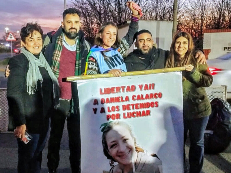 A pesar de la oposición del fiscal federal Carlos Stornelli, la jueza federal María Servini de Cubría firmó este miércoles la excarcelación de Daniela Patricia Calarco Arredondo, una de las dos personas que permanecían detenidas tras la represión a la marcha en Congreso contra la ley Bases, aprobada el 12 de junio pasado por el Senado de la Nación. “No planeen todavía ninguna fiesta porque mañana tengo que estar temprano en el juzgado”, dijo ya libre, largó una carcajada y se puso la pechera celeste de su agrupación, el Movimiento Teresa Rodríguez Votamos Luchar, con la cara del Che Guevara en la espalda. Mientras abrazaba a sus compañeros y compañeras desplegó la bandera multicolor de la diversidad. En tanto, el premio Nobel de la Paz Adolfo Pérez Esquivel, la diputada del FIT-U Myriam Bregman y miembros del Encuentro Memoria, Verdad y Justicia visitarán el jueves al ahora único detenido, Roberto de la Cruz Gómez.