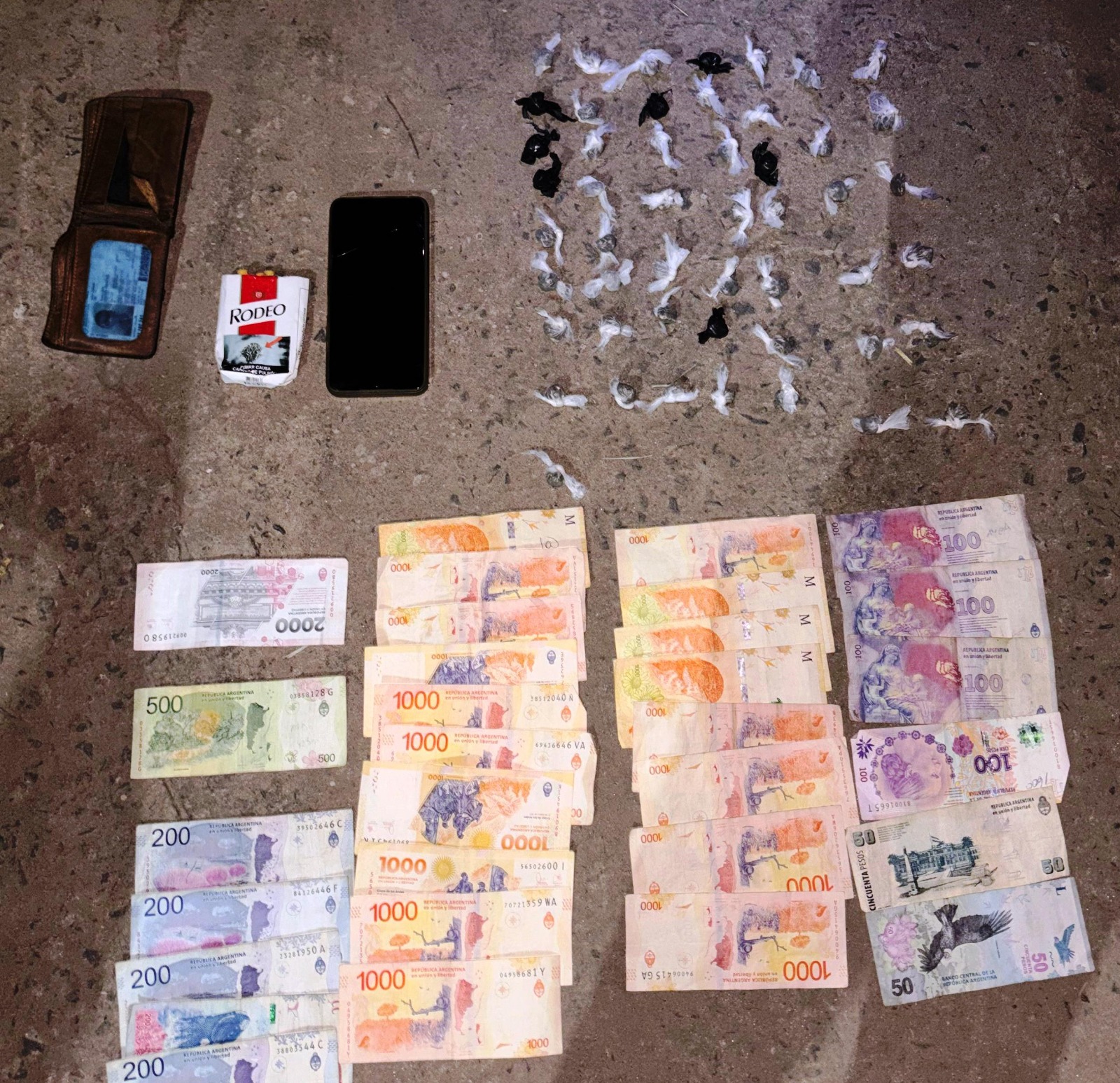 Luego de la prueba de campo, se determinó que se trataba de marihuana con el peso total de 33 gramos, secuestraron los 50 envoltorios, como así también la suma de $22000 pesos y un teléfono celular.