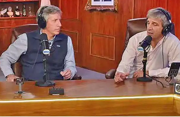 El jueves, el ministro de Economía Luis Caputo junto al presidente del Banco Central, Santiago Bausili, volvieron a aparecer en el programa del streaming Carajo (sic) llamado Las tres anclas por los tres conductores, dos exsocios de Caputo y Santiago Bausili: respectivamente Federico Furiase, miembro del directorio del Banco Central, Martín Vauthier, y Felipe Núñez, directores del Banco de Inversión y Comercio Exterior (BICE).