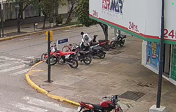 Un malviviente batió récord delictivo este lunes cuando en solamente 5 segundos robó una motocicleta en la vereda de calle 9 y 12, pleno centro de Presidencia Roque Sáenz Peña. El rodado era de un empleado de la farmacia ubicada en esa esquina. Cámaras del Centro de Monitoreo Municipal muestran que el delincuente se fue desde la zona céntrica hacia los barrios ubicados al oeste de la ciudad (Tiro Federal o Ginés Benítez).