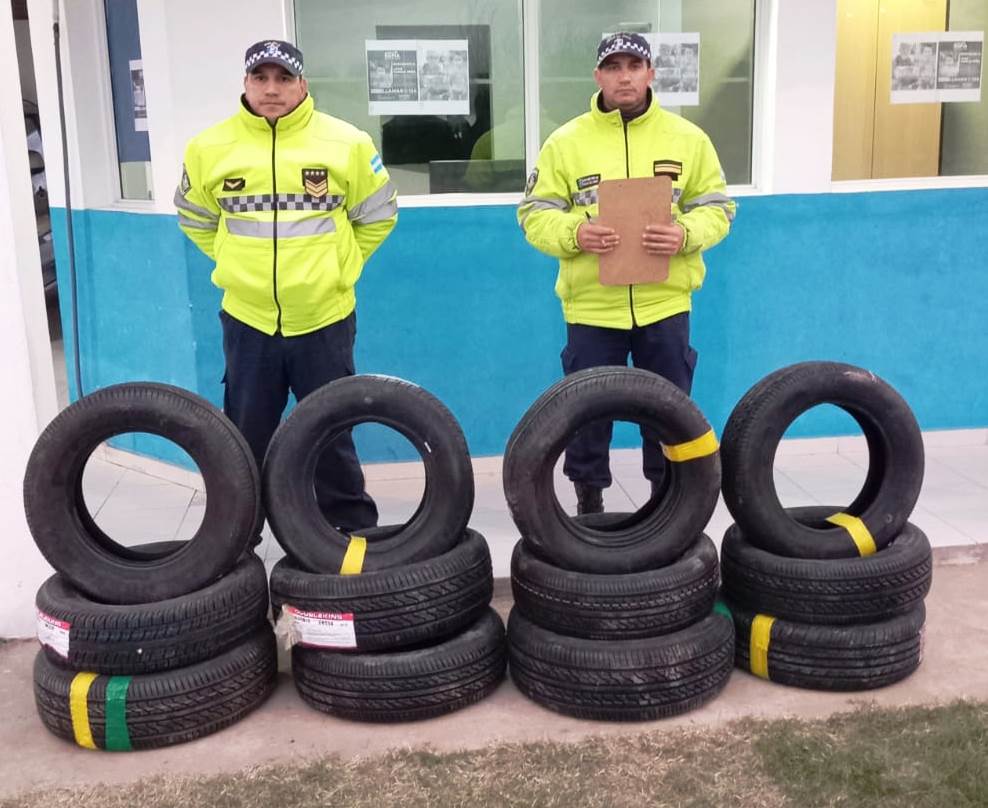 Alrededor de las 17, en la Ruta 16 al kilómetro 318, demoraron el paso de una camioneta Volkswagen Suran conducida por un hombre de 28 años, al verificar el interior del rodado descubrieron que transportaba 10 cubiertas sin aval aduanero, labraron acta de secuestro.
