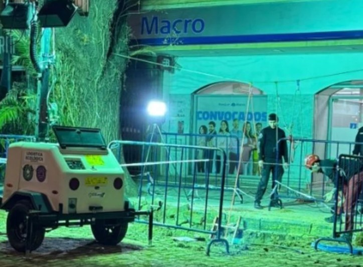 En tanto, un analista técnico acudió a la sucursal bancaria para evaluar si las alarmas del edificio estaban en funcionamiento y, tras confirmar que todas estaban activadas, los efectivos policiales extrajeron la varilla metálica y descubrieron que no era la única que se encontraba enterrada en el lugar.