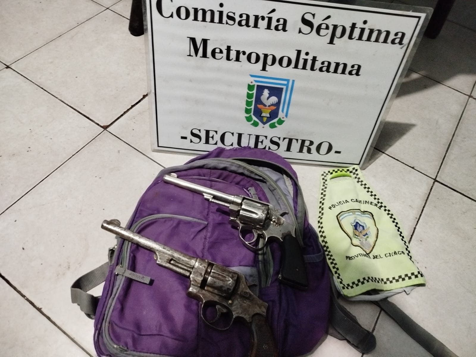 Durante el operativo, los efectivos de Caminera interceptaron a un motociclista y, al verificar sus pertenencias, hallaron en el interior de una mochila dos revólveres calibre .38, sin marca visible y sin cartuchos.