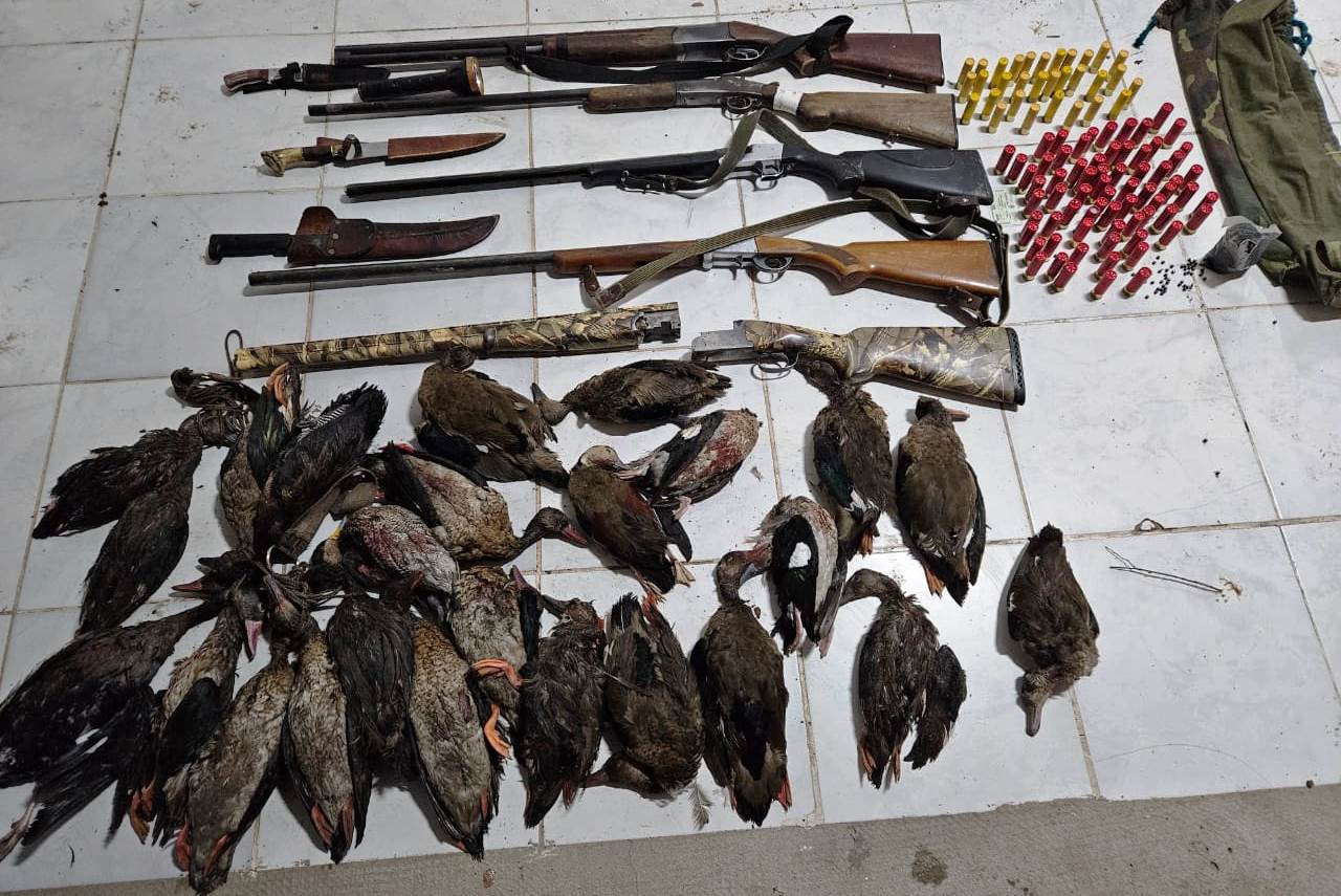 Por ello procedieron al secuestro de cinco escopetas, cien cartuchos, tres cuchillos, una linterna, y 24 patos sin vida. Los hombres, todos mayores de edad, fueron conducidos a la dependencia policial.