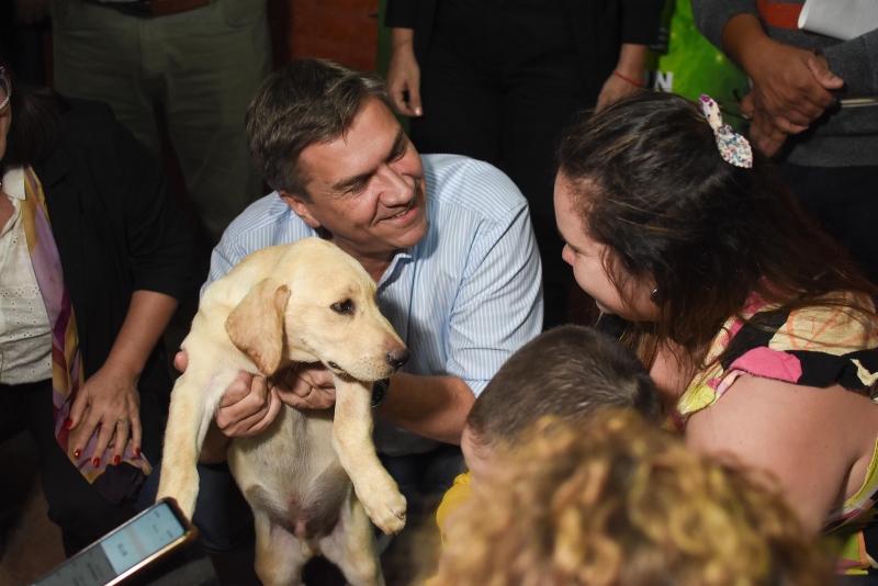 “Acompañamos al CAIDIN e hicimos entrega de cachorros labradores para una misión muy especial. Lo veníamos haciendo hace mucho tiempo en la provincia, antes de ser gobernador y ya conocía también a esta institución. Trabajamos a lo largo y a lo ancho de la provincia con el cariño y el amor que tienen también Luis y Dorys tenían por los cachorros y comenzamos a trabajar primero de manera independiente, después fuimos coordinando con las instituciones y de esa manera llegando a los niños con discapacidad, en lo que significa el acompañamiento de estos cachorros por las características que tienen en el desarrollo y el crecimiento de sus actividades”, aseguró el mandatario durante su visita.