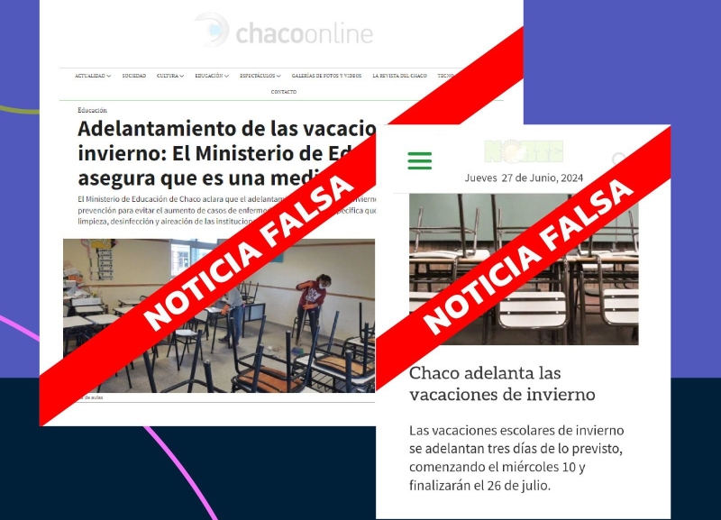 Desde el Ministerio señalaron que este viernes se difundió a través de WhatsApp una imagen trucada de una noticia periodística, publicada en 2019 en el diario Norte y en el portal Chaco on Line-, con el fin de desinformar generar confusión y un estado de alerta entre los docentes, estudiantes y padres, considerando que en su momento esa medida fue como prevención para evitar el aumento de casos de enfermedades estacionales.
