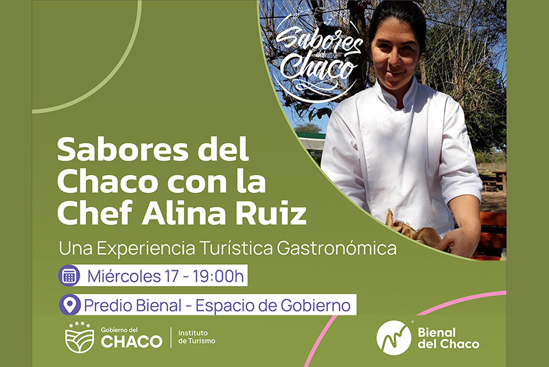 19:00 hs – Sabores del Chaco con la chef Alina Ruiz: una experiencia gastronómica única que combina turismo y tradición.