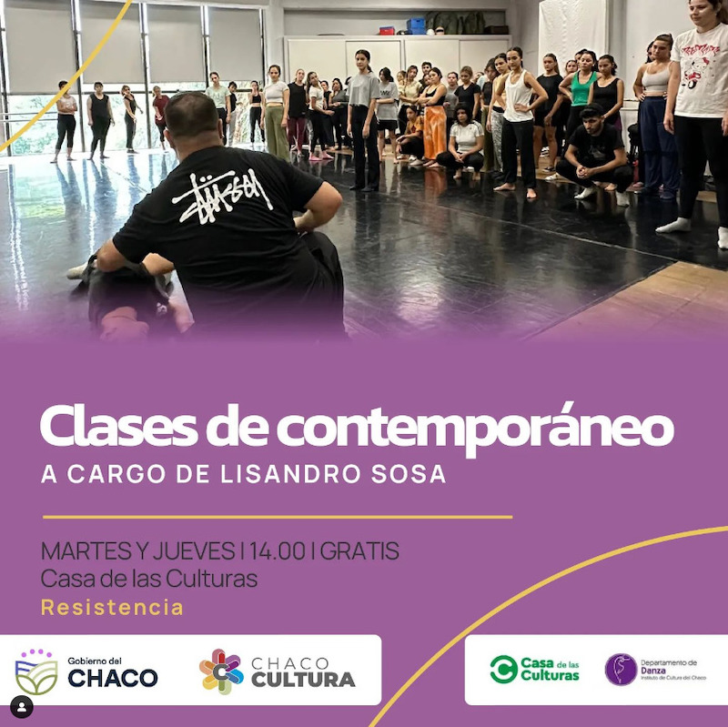 Serán clases de contemporáneo dictadas por el bailarín y docente Lisandro Sosa. Se llevarán a cabo en el 1er piso de Casa de las Culturas, donde funciona el Ballet Contemporáneo del Chaco (BCC).