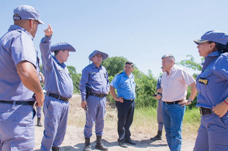 El ministro Matkovich, en una recorrida por la zona rural, del departamento General San Martín, realizó un pormenorizado relevamiento de los lugares sensibles y propicios para eventuales delitos rurales. Estuvo acompañado del subjefe de la Policía del Chaco, comisario General Manuel Silva, el director General de Seguridad Rural Ambiental, comisario General Mario Escobar, y el jefe del Departamento Rural de San Martín comisario Nayor Ángel Alvarenga, y la comisario General de la Policía, Julia Gómez, a cargo de la Dirección Ejecutiva del CeAC.