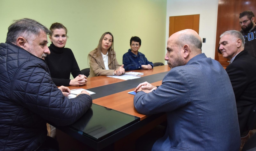 El ministro de Gobierno, Justicia, Trabajo y Derechos Humanos, Jorge Gómez, junto a la subsecretaria de Asuntos Registrales y la interventora de Personas Jurídicas, Marcela Pibernus, recibieron al presidente del Nuevo Banco del Chaco, Germán Dahlgren para firmar un convenio marco de cooperación.