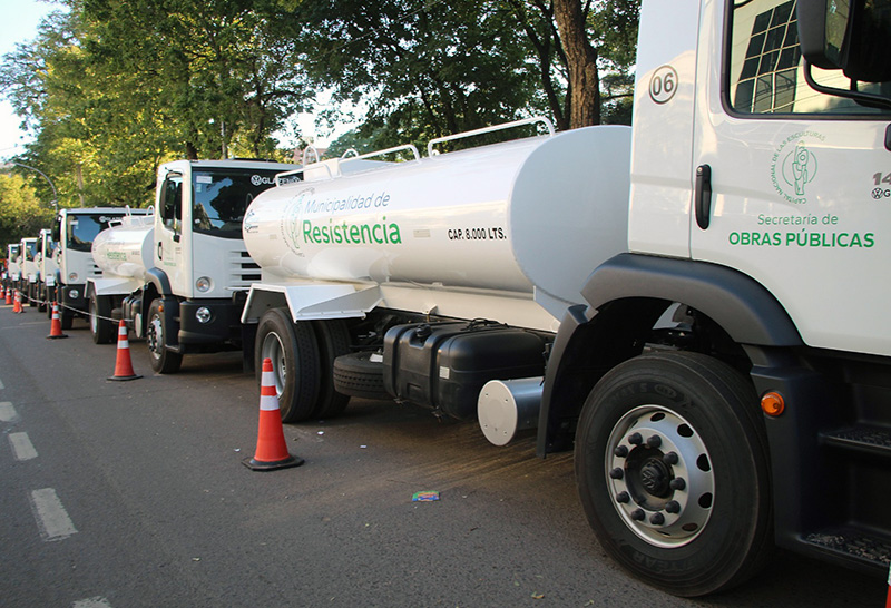La Municipalidad de Resistencia presentó nuevos equipos viales para reforzar los servicios en la ciudad. Se trata de 6 camiones regadores de 230 hp y capacidad para 8 mil litros y tres tractores con desmalezadoras, todos adquiridos con fondos propios.