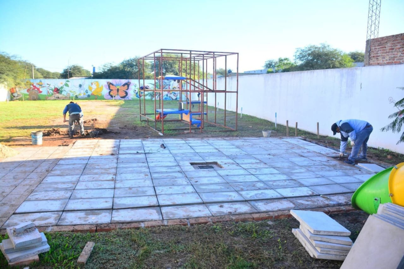La Secretaría de Obras Públicas de la Municipalidad de Juan José Castelli avanza con trabajos de mejoramiento en espacios destinados a la infancia.