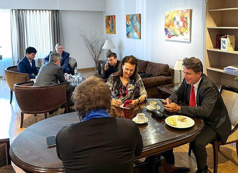 En la reunión de gabinete también estuvieron el candidato propuesto para presidir la Cámara de Diputados, Martín Menem; y el asesor de Milei, Santiago Caputo, además del designado secretario de Energía, Eduardo Rodríguez Chirillo, el posible secretario de Trabajo, Gustavo Morón -que se retiró 20 minutos más tarde-; la Secretaria de Medios, Belén Stetlter; y el cineasta Santiago Oria, que realizó los spots publicitarios del libertario durante la campaña.