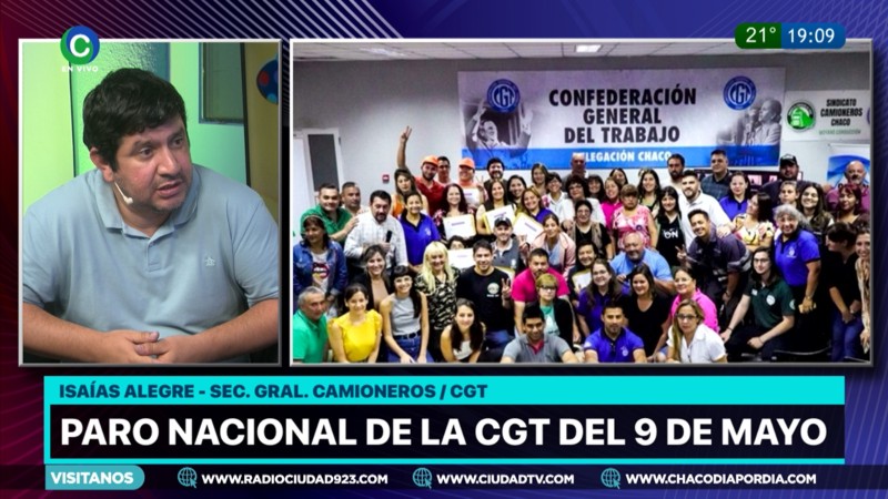 El prosecretario de la CGT chaqueña y secretario general de Camioneros, Isaías Alegre dijo a CIUDAD TV que se hará una huelga general, pero sin movilización. “Se van a paralizar todas las actividades”, “primero fue contra los diputados y ahora contra los gremios”, “panorama desolador”, fueron algunos de sus conceptos, y pidió a los trabajadores denunciar cualquier “apriete” de la patronal o el Gobierno.