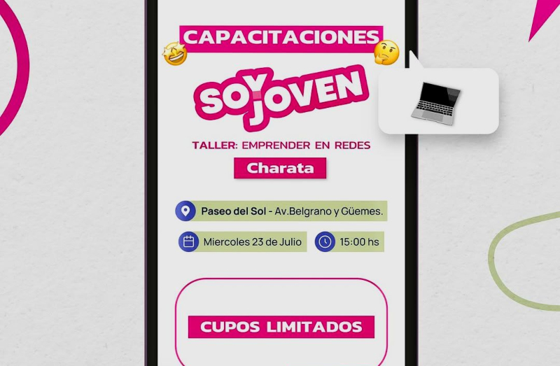 Con el objetivo de acompañar a las jóvenes en el desarrollo de sus proyectos y emprendimientos digitales, el programa “Soy Joven” desembarcará en Charata, el miércoles 23 de julio, a las 15, con el taller “Emprender en Redes”. Una propuesta dinámica, actual y 100% pensada para quienes sueñan con crecer en plataformas como Instagram, TikTok y más.