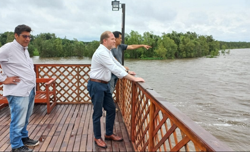 Junto a equipos de trabajo del Gobierno provincial y del Municipio verificaron la asistencia y contención de las poblaciones ribereñas que padecen la creciente del río.