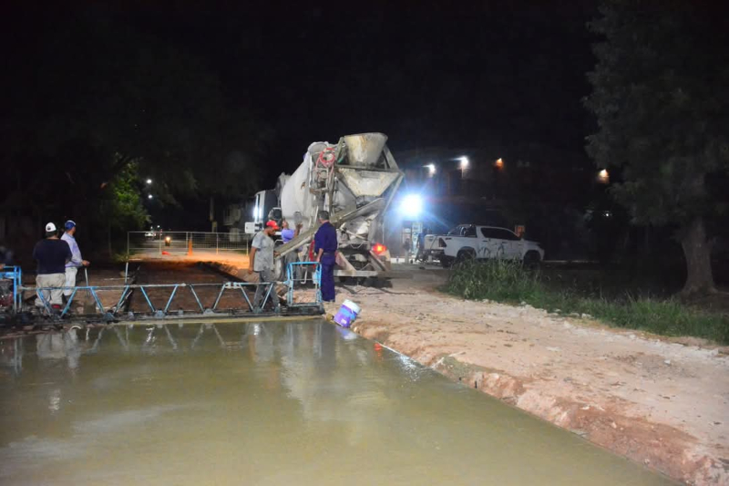 Avanzan las obras de pavimentación en la intersección de Dr. Horacio Vázquez y Esteban Maradona