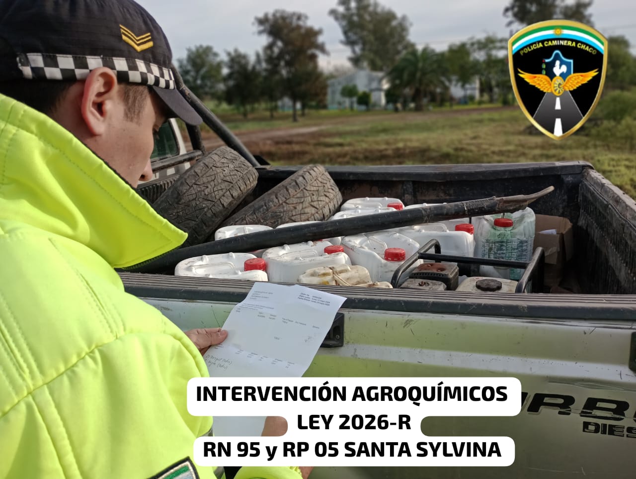 La Policía Caminera realizó el miércoles un control vehicular en Ruta Nacional N°95 Y Ruta Provincial km 5 de Santa Sylvina. Demoraron el paso de dos camionetas, una con gasoil y otra con agroquímicos, quienes no contaban con la documentación exigible para transporte.