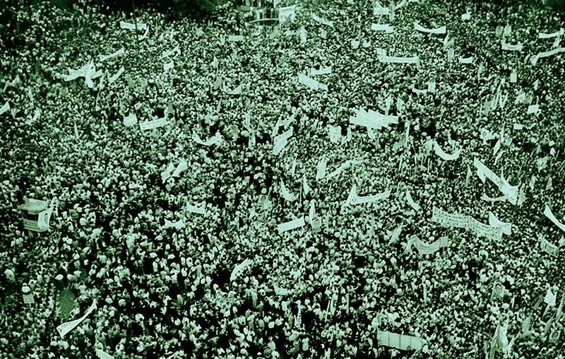 Ciento de nmiles de trabajadores ocuparon la Plaza de Mayo, el centro de la Ciudad de Buenos Aires y lograron que el vicepresidente depuesto fuera liberado de la prisión de la Isla Martín García en respuesta a una histórica manifestación laboral.