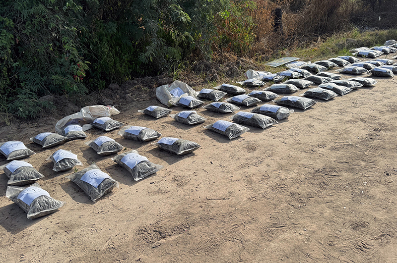 Cerca de las 14, los agentes demoraron el paso de un Renault Logan con tres ocupantes de 24, 36 y 38 años. Mientras ellos exhibían las documentaciones del vehículo, los agentes quisieron revisar la carga del baúl. Allí encontraron siete bolsas arpilleras que tenían 71 paquetes termosellados con cogollos de marihuana.