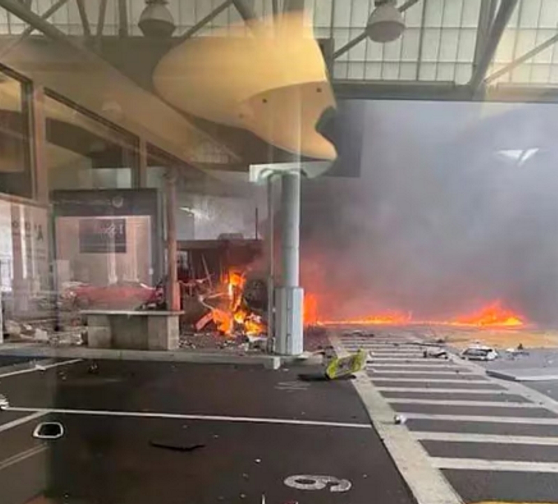 Algunas imágenes difundidas en redes sociales muestran una cabina de seguridad y aduana destruida por las llamas.