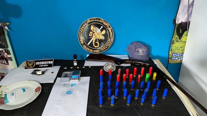 Cerca de las 12, tras abordar la vivienda ubicada sobre calle 40, lograron secuestrar una escopeta marca Centauro calibre 28, 36 cartuchos de distintos calibre, cinco bochitas de cocaína, un trozo compacto de la misma sustancia con un peso de 8,6 gramos, una balanza y un tester de interés para la causa.